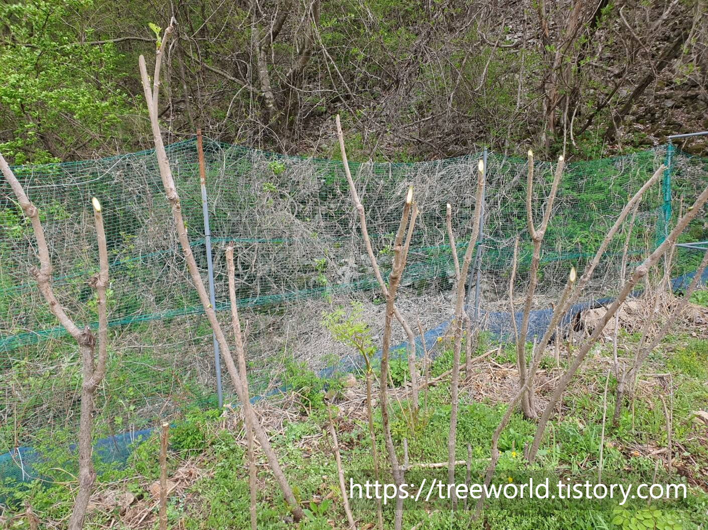 두릅나무 번식 시키는 다른 방법은 외대로 올라온 줄기를 자르는 방법입니다. 두릅나무 원줄기를 자르면 줄기에서 자란 맹아가 자라서 줄기가 되는 그러면 하나의 외대가 잘리고 남은 줄기의 눈에서 2개 정도의 새로운 가지가 자랍니다. 이렇게 두릅나무줄기 자르기를 해야 키가 낮아져서 두릅순을 채취하기도 좋고 가지가 많아져서 새순도 많이 생깁니다. 두릅나무 번식을 위해서는 단근작업과 줄기 자르기를 4월 중에 해야 합니다. 너무 늦어지면 새순이 나와서 줄기가 되기 전에 추위가 오면 동해를 입어 죽게 됩니다. 6웧이후에는 하면 안 됩니다. 날이 더우면 새순이 안 나오고 가을에 나오게 되는 그러면 동해를 입게 됩니다. 줄기를 자를 때는 아래에 눈이 한두 개 있는지 확인하고 잘라야 합니다.