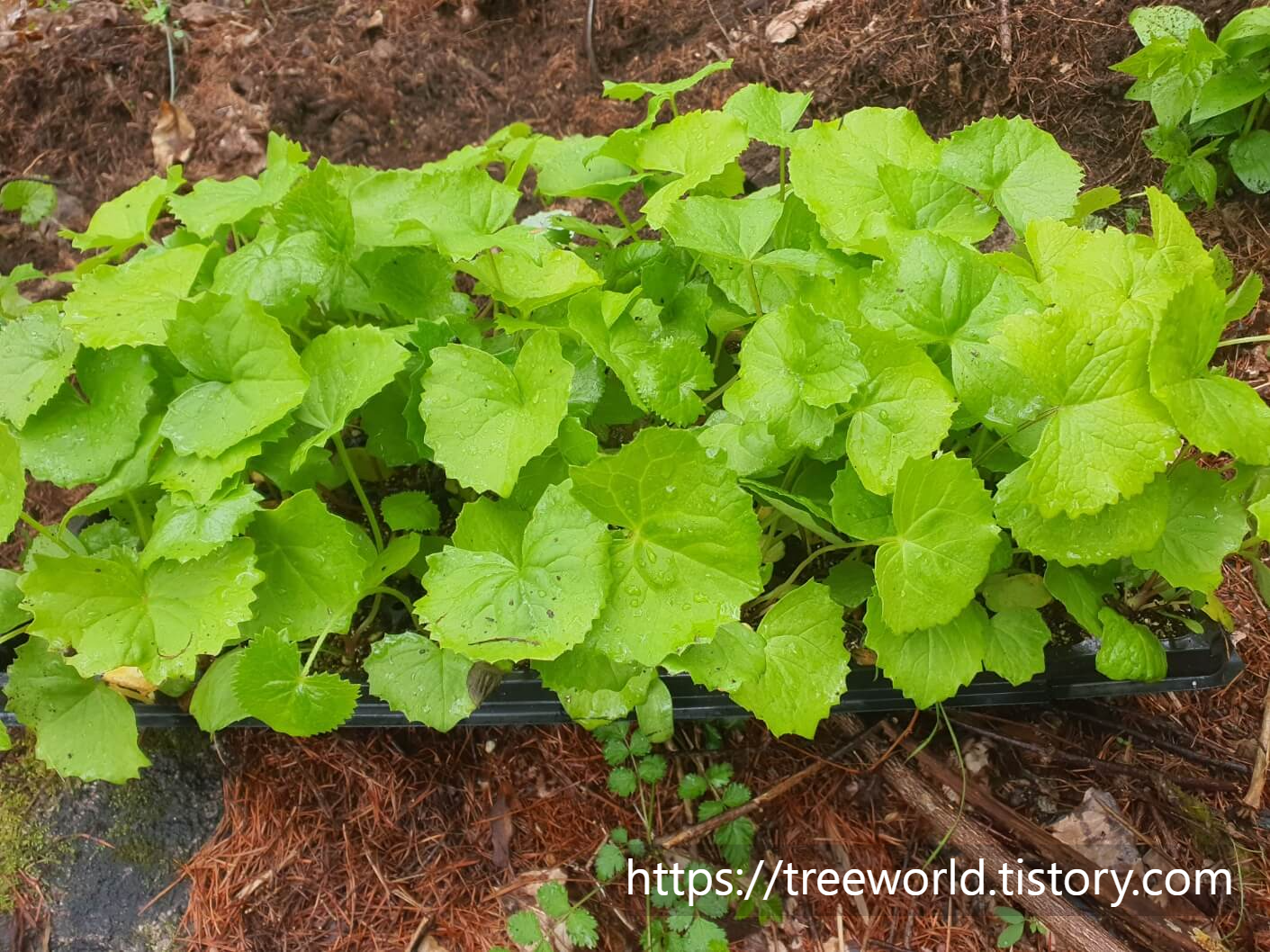 곰취나물 재배방법중 곰취나물 모종을 심은 뒤에는 반드시 물을 주어야 합니다. 포트에서 물을 충분히 주고 심어야 하며 심고난뒤에도 물을 충분히 주어야 합니다. 그런 다음 나뭇잎으로 뿌리주변을 덮어주면 멀칭효과가 있어 잡초도 안 자라고 수분손실이 최소화됩니다. 낙엽들은 표토층의 흙의 유실도 막고 수분을 머금고 있는 역할을 하므로 중요합니다. 산에서 물 주기는 어려우므로 처음에 충분한 물을 주고 깊게 심고 나뭇잎 멀칭을 하면 이후로는 관수를 안 해도 심한 갈수기 아니면 잘 자랍니다. 곰취나물 심은 후 관리는 초겨울 땅이 얼고 눈이 조금 내리면 잘 숙성된 축산 계분이나 유박을 뿌려주면 동해도 이기고 봄에 눈이 녹으면서 영양분이 같이 스며들어 잘 자랍니다.