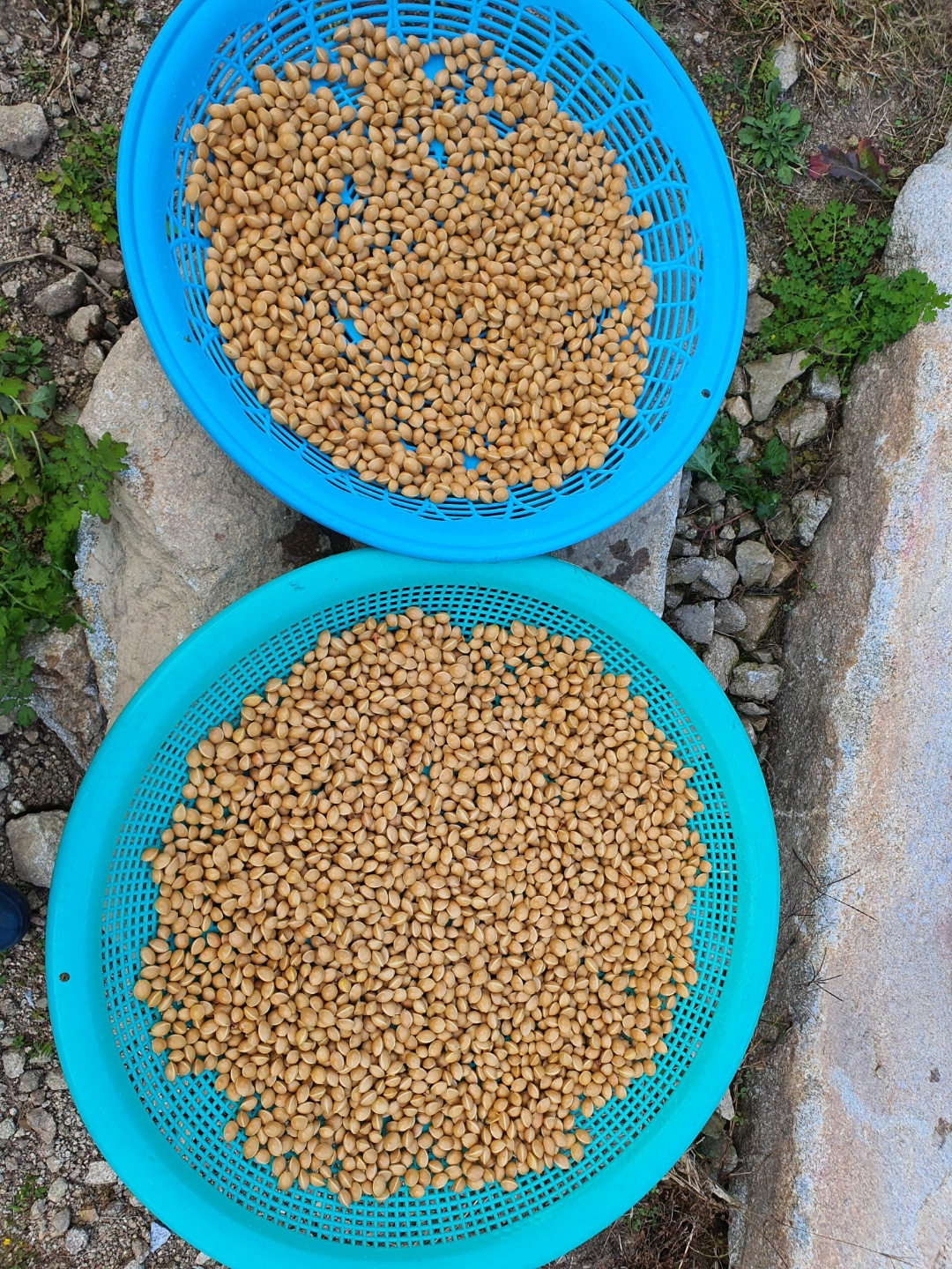 나무에서 흔들어서 떨어지게하고 그것을 줍고 또 시냇물에 죽으로 만든것을 여러번 씻고 해야 이제서 나타나는 은행의 모습입니다. 아직도 먹을려면 이것을 바짝 말려서 전자렌지에 넣고 익혀서 먹어야 하므로 한두번의 과정은 더 있어야 먹을수 있지만 현재의 모습이 우리가 가장흔하게 보는 은행의 모습 입니다. 은행 과육열매 10kg따서 씻고 정제해서 나온것은 은행약 4kg입니다. 건조시키면 약2kg정도 될것이라 생각됩니다. 감사합니다.