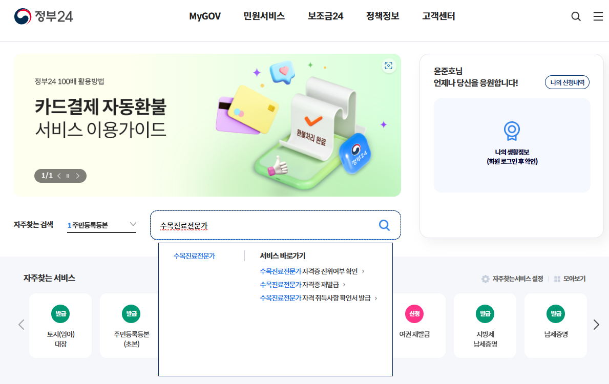 | 수목진료전문가 자격증 진위여부 정부24 민원 서비스 지원 (0) | 2024.04.30 |