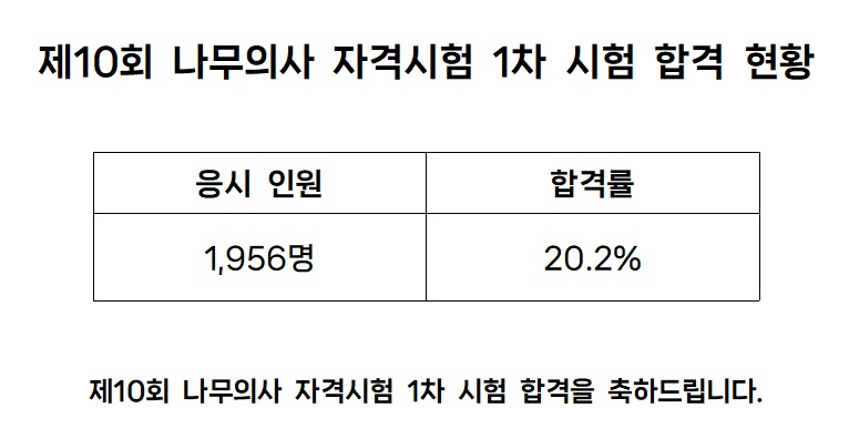 나무의사 자격시험 10회 1차 합격자를 지난 4월 12일 발표하였습니다. 최종합격률이 20.2%입니다. 응시인원이 1,956명 이었으므로 392명 정도가 10회 1차 시험에서 합격하였습니다. 문제의 난이도가 전반적으로 있었는데 합격률이 어느 정도 되는 것은 수험생들이 공부를 많이 한 결과가 아닌가 생각합니다. 난이도 관리는 잘되었다고 평가됩니다.