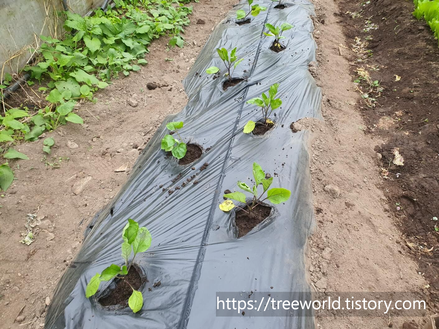 가지모종 심는 방법은 간격은 70~80cm이상 충분히 벌리고 지그제그로 심되 모종 간의 폭은 40cm 이상되게 하는 것이 좋습니다. 가지는 사방으로 가지가 뻗어가서 열매가 맺으므로 공간을 확보해 주어야 합니다. 가지모종 심는 깊이는 뿌리분의 1.5~2배 크기로 깊이와 너비를 파는 것이 적당합니다. 그리고 흙으로 덮고 손으로 눌러서 다지면 됩니다. 작은 공간이라도 작은 물집을 손으로 만들어 주면 점적관수된 물들도 고일수 있으니 효과적인 방법입니다.