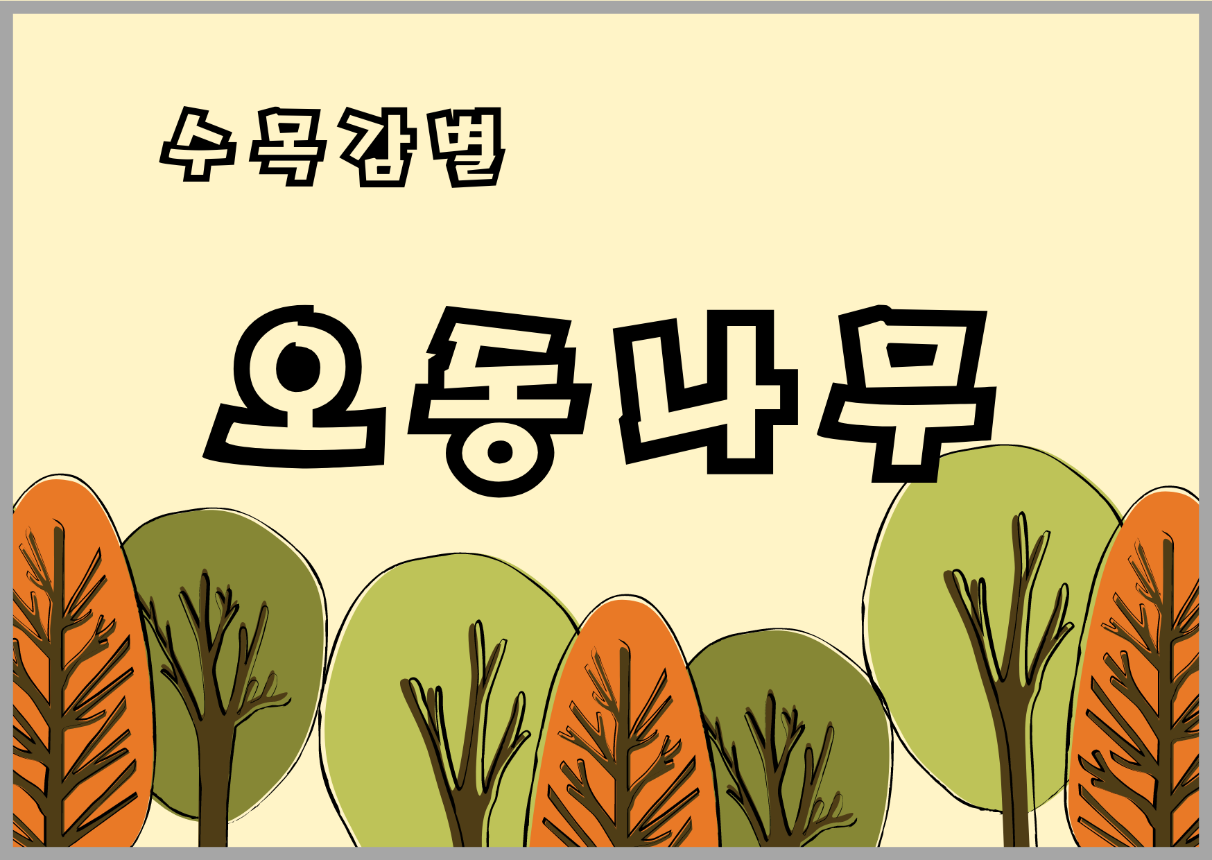 오동나무의 수피 및 수목감별 포인트입니다. 오동나무 수피는 회갈색이며 껍질이 얇습니다. 남부수종의 대부분의 나무는 수피가 얇고 갈라짐이 거의 없는 게 특징입니다. 수피 외에 오동나무는 나무 특유의 냄새가 나는데 이 때문에 벌과 나비가 많이 찾아옵니다. 오동나무 수목감별 포인트는 매우 큰 5 각형의 잎과 보라색의 꽃 입니다. 그리고 여름에 맺어 가을에 삭과로 벌어지는 열매를 계절별로 기억하시면 됩니다.