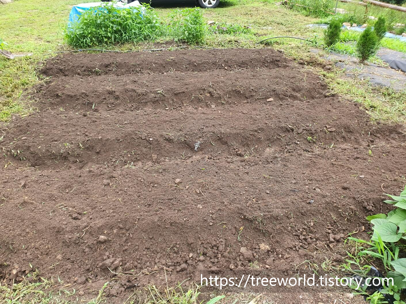 들깨모종을 심는 고랑이은 10cm 이상 높게 만들고 너비는 40~50cm이면 됩니다. 그리고 심는 간격은 30~40cm, 2포기씩을 한구덩이에 심어면 됩니다. 고랑과 고랑사이의 이랑 너비는 많이 넓어야 합니다.
