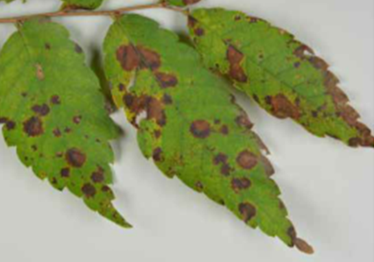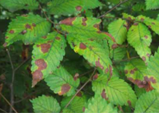 느티나무흰색무늬병(백반병) 병원체의 학명은 Pseudocercospora zelkowae이며 월동태는 균사입니다. 느티나무흰무늬병, 느티나무갈색무늬병, 느티나무흰색무늬병 모두 같은 병명입니다. 병징은 나뭇잎의 양면에 병반이 형성되며 농갈색에서 흑색을 뜁니다. 느티나무흰색무늬병 생태특성은 병원균은 병든낙엽에서 균사의 상태로 겨울을 나고 봄에 분생포자를 형성하여 새로 피어난 어린잎에 옮겨가 1차 감염을 일으킵니다. 1차 감염에 의해 생긴 병반 위에 형성된 분생포자는 2차 전염원이 되어 다시 병을 크게 확산시키며 이러한 반복전염이 가을까지 이어집니다.