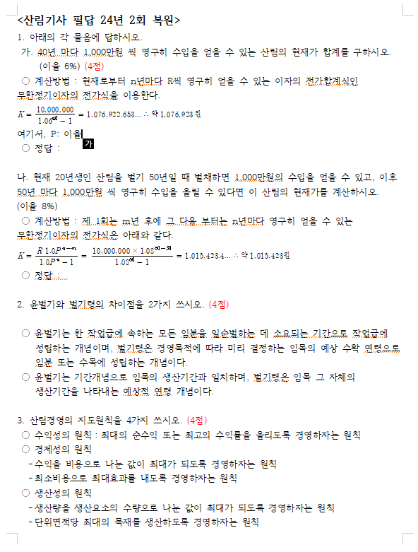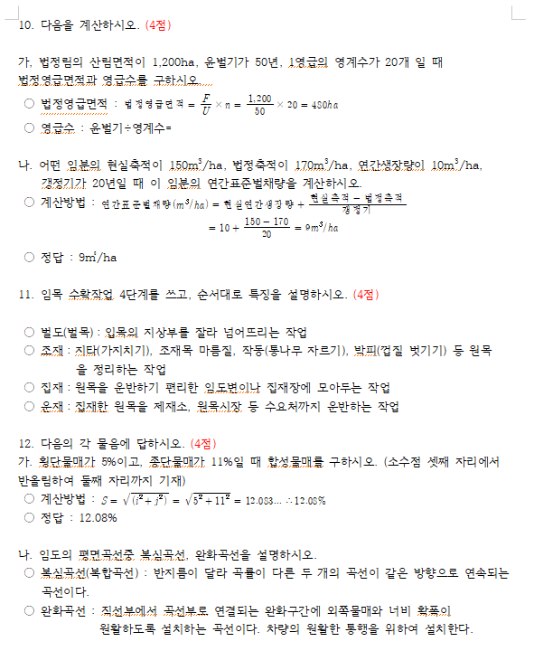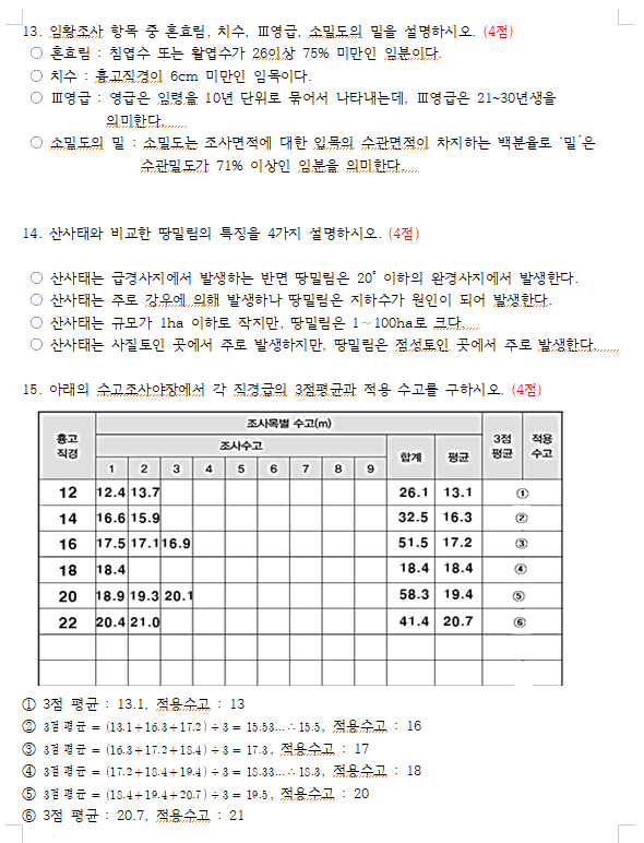 산림기사 필답문제를 전체적으로 분석하여 복원하였습니다.