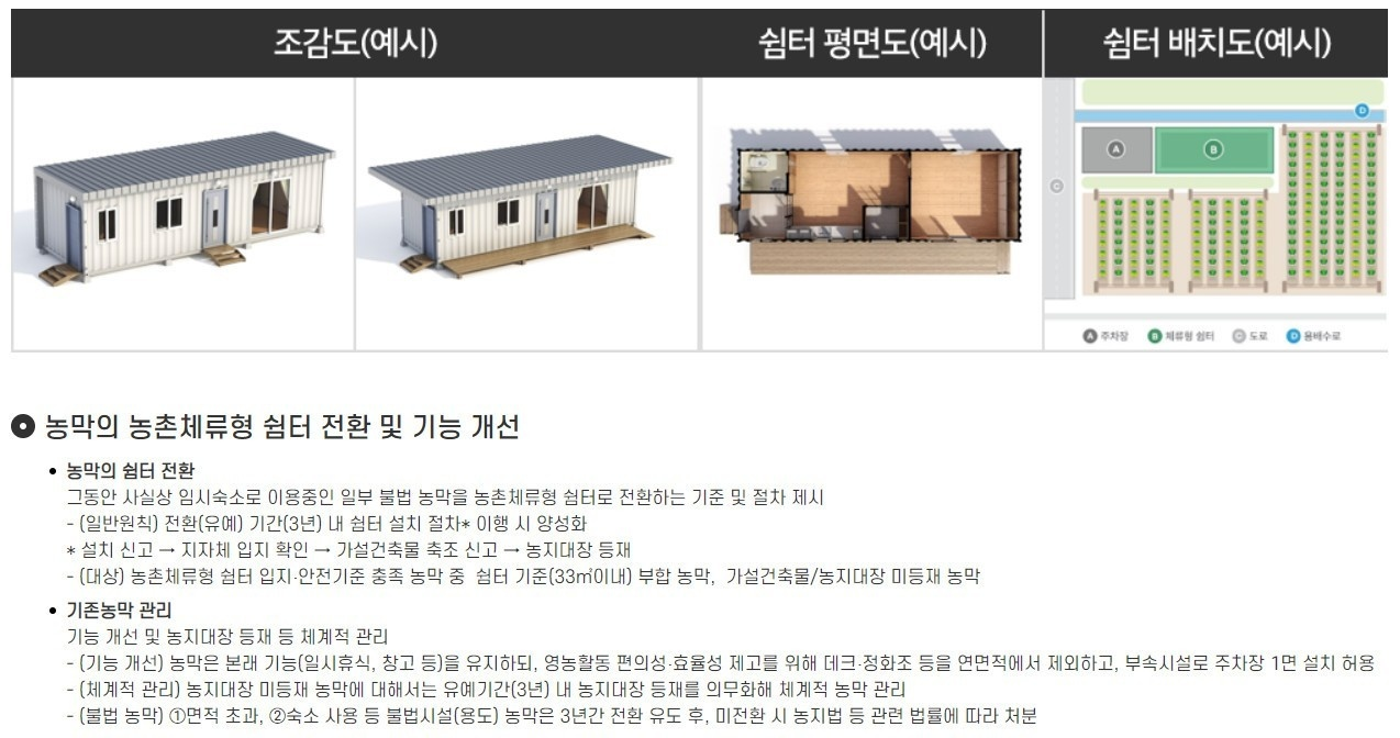 농촌체류형 쉼터의 형태는 여러가지가 있지만 제시된 기본적인 형태를 참고하시면 좋을것 같습니다.