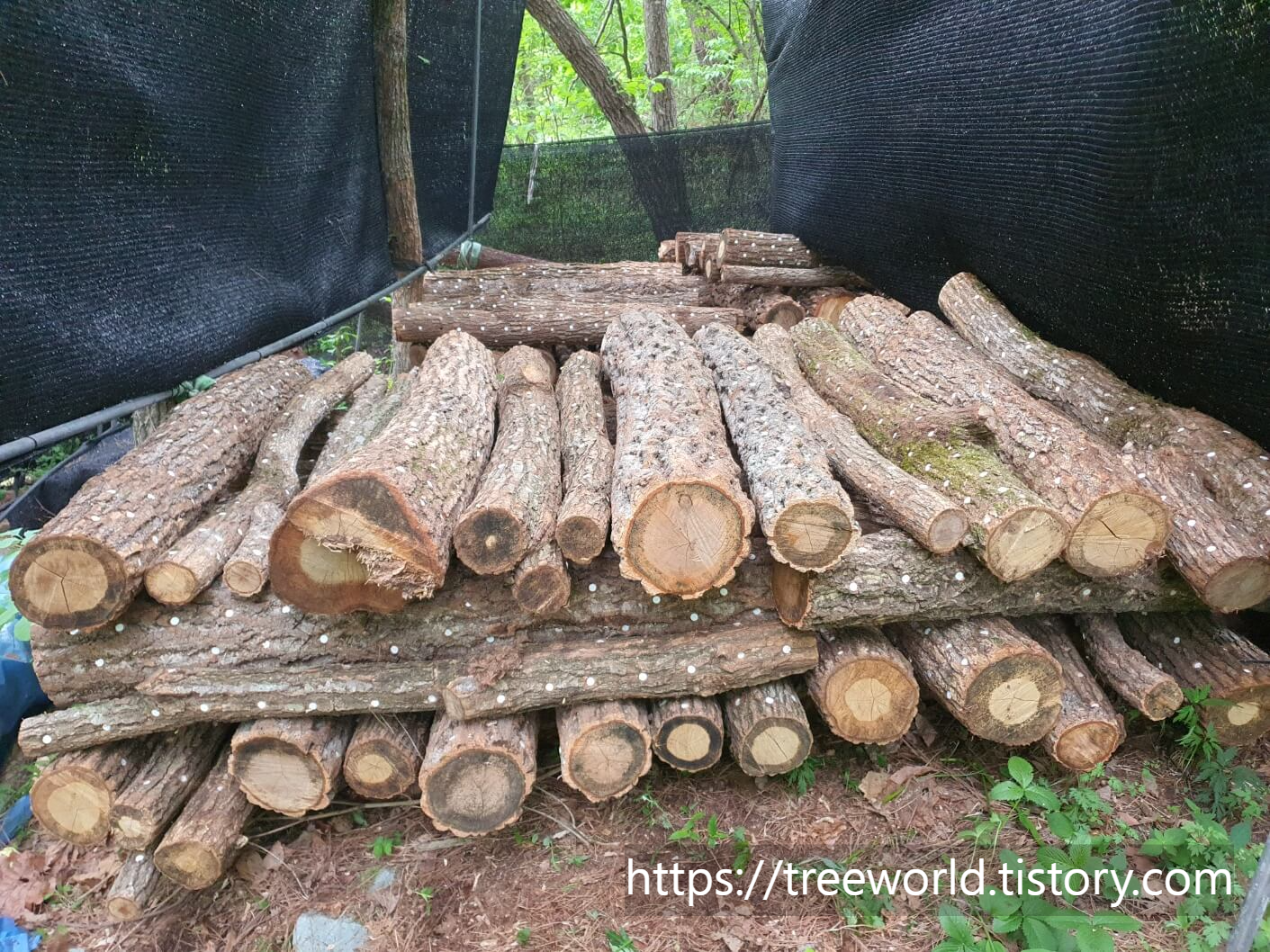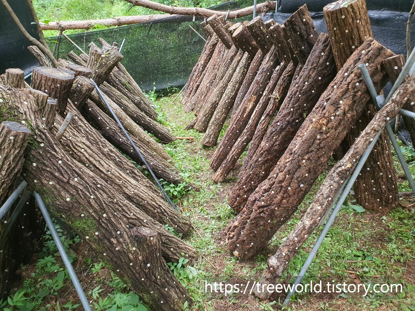 여름철 표고버섯 원목 관리방법에 대하여 소개해 드리겠습니다. 원목 표고버섯은 3~4월에 종균을 접종하고 장작 쌓기 형태로 관리하면서 2주에 1회 정도 물 주기를 합니다. 물론 비가 많이 오거나 습하면 물 주기를 중지해야 합니다. 과도한 수분공급은 곰팡이 등 유해균을 발생시킵니다. 그리고 5~6월이 되면 장작 쌓기 방식에서 우물정자 쌓기 방식으로 변경하면서 원목을 상하 교체를 합니다. 그러면서 물 주기도 7~10일 간격으로 교체합니다.