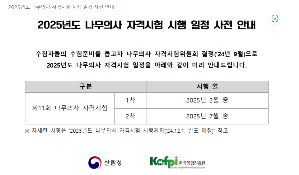| 나무의사 자격시험 응시자격 사전심사 (1) | 2024.11.08 |