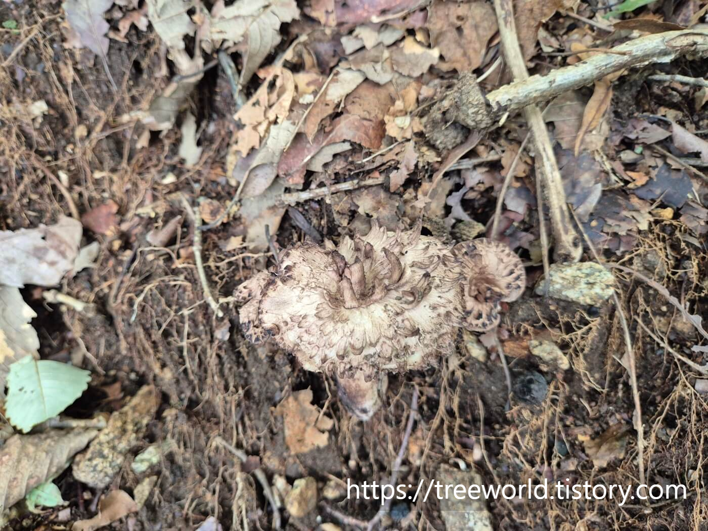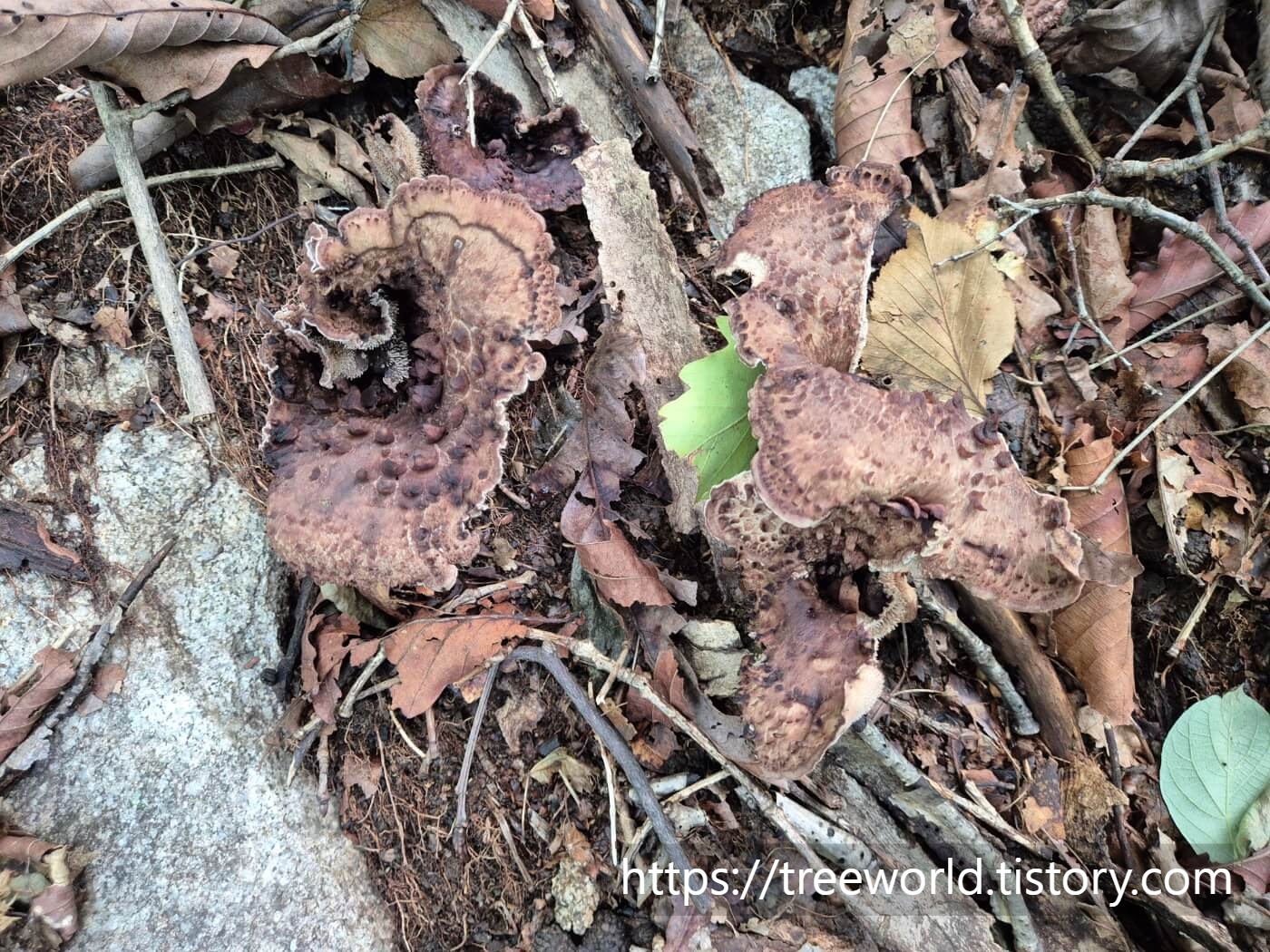 매년 어느정도의 능이버섯을 보여주던 구광자리 몇 군데를 갔지만 능이는 없고 잡버섯만 조금씩 보였습니다. 가지버섯, 노루궁둥이버섯 등 이런저런 잡버섯도 거의 없고 씨알이 말라 보였습니다. 아침 9시에 버섯산행을 시작하여 오후 3시까지 총 4군데 구광자리를 탐색하였습니다. 능이버섯 외에는 사진만 찍고 패스하였습니다. 이맘때쯤이면 잡버섯은 많아야 하는데 거의 버섯이 없었습니다.