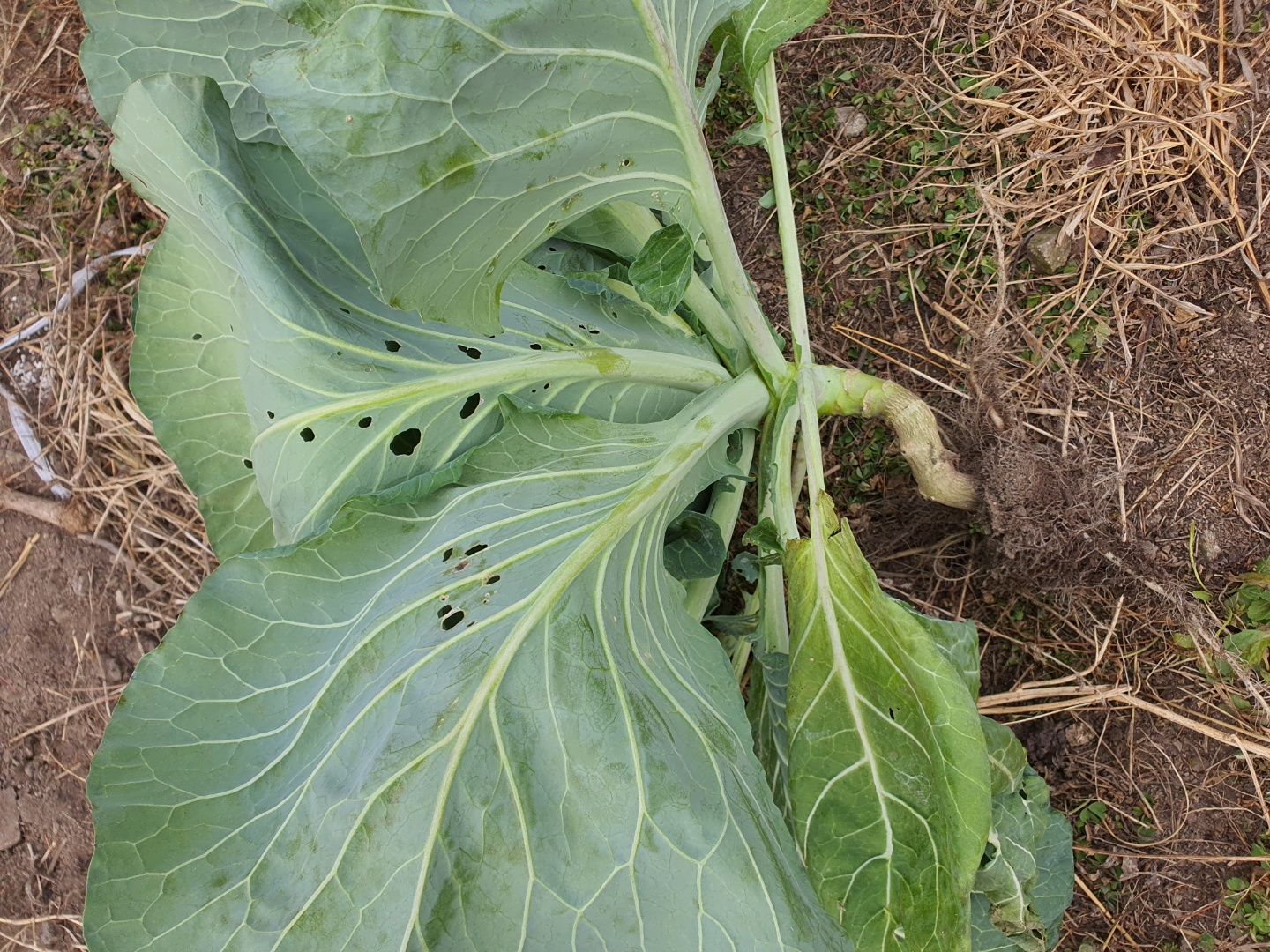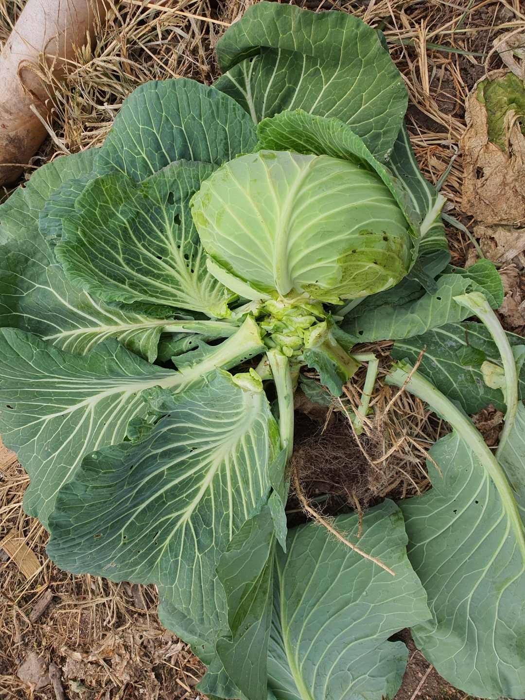 양배추는 추위에도 어느정도 강해서 서리가 와도 속에서는 계속 자라고 있습니다. 겉에있는 잎들이 시들어서 죽어있는것처럼 보여도 겉잎이 속을 보호 하면서 실속있게 자라고 있습니다.