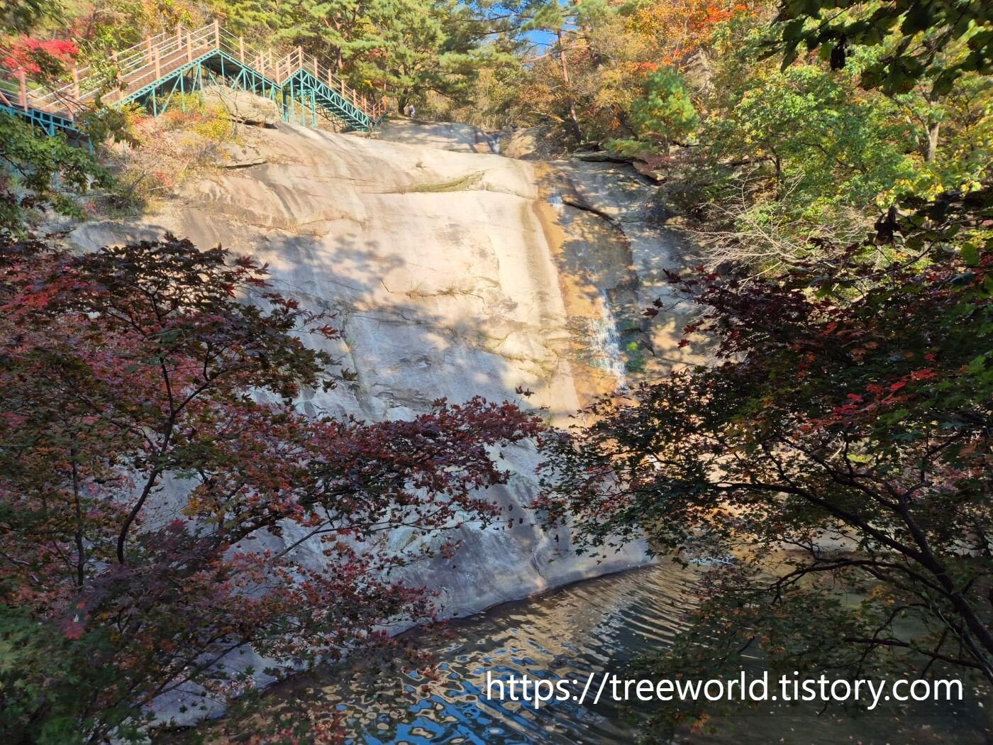 오르다 보면 비선폭포가 있고 힘들다고 생각될 때쯤 등룡폭포가 있습니다.