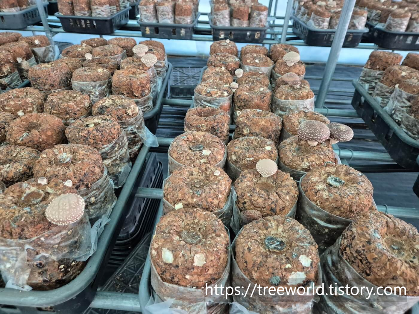 약간의 빛은 있어야 하되 직사광선은 절대 안 됩니다. 그리고 수분은 많아야 하지만 물이 촉촉하게 있으면 안 들입니다. 통풍이 잘되어야 나쁜 곰팡이가 없이 표고버섯 포자가 잘 자랍니다. 그러므로 생각보다 생육조건이 까다롭습니다.