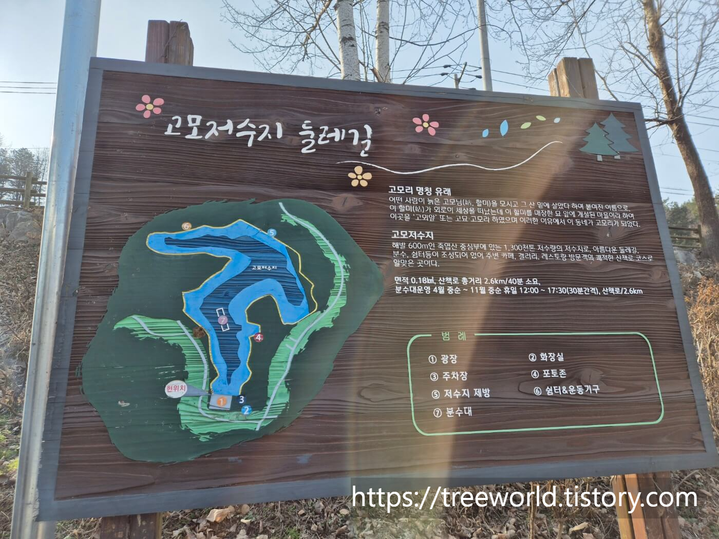 저수지 둘레길 안내를 잘보시고 산책을 하면 즐거움이 더합니다.