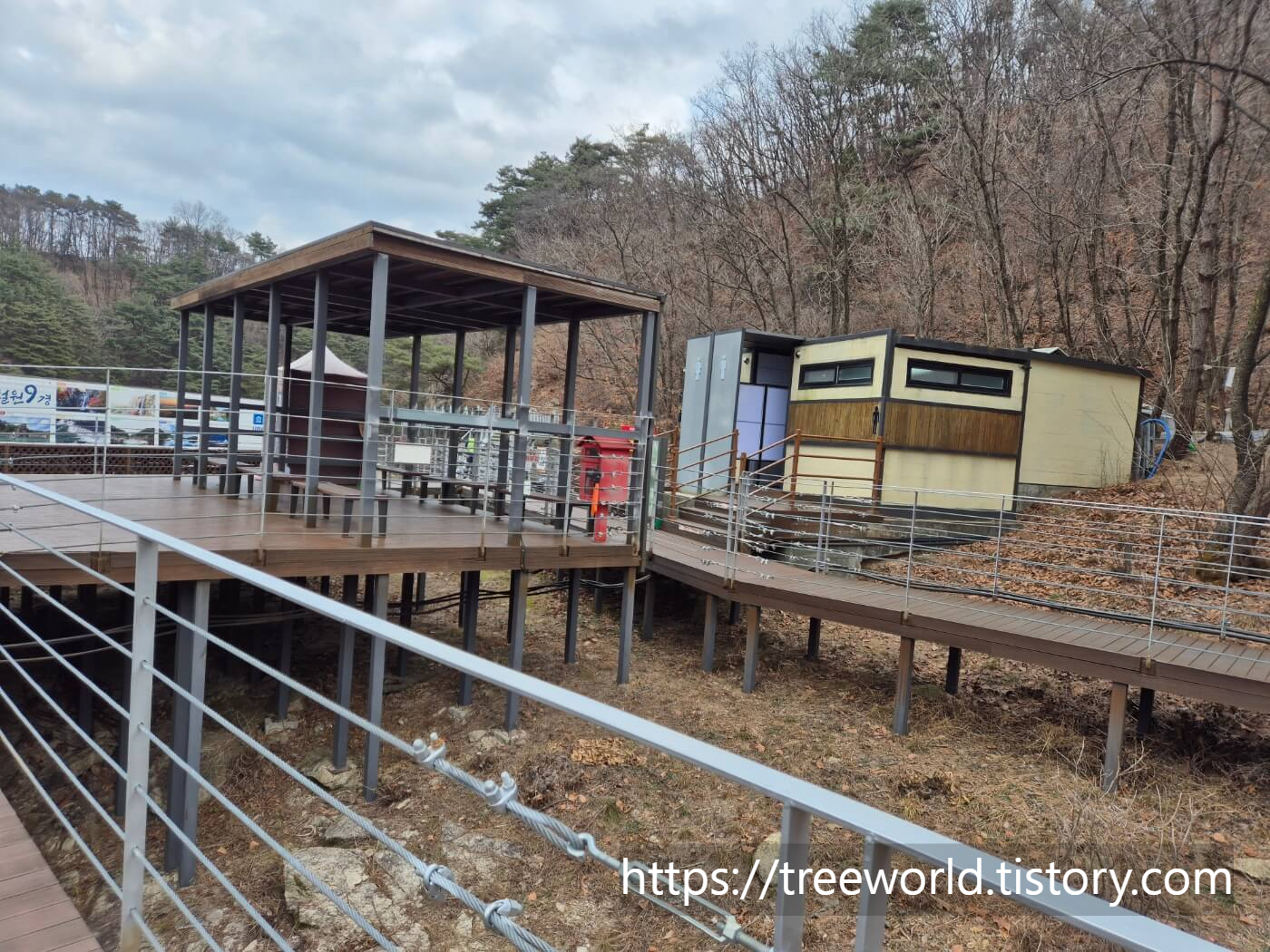그리고 곳곳에서 안내와 청소하는 분들이 계셔서 안내를 받을 수 있으며 데크길과 계단이 많아 중간중간 쉬어갈 수 있도록 쉼터가 있습니다. 여기에는 안내하시는 분이 있는데 음식물취식등을 감시도 합니다.