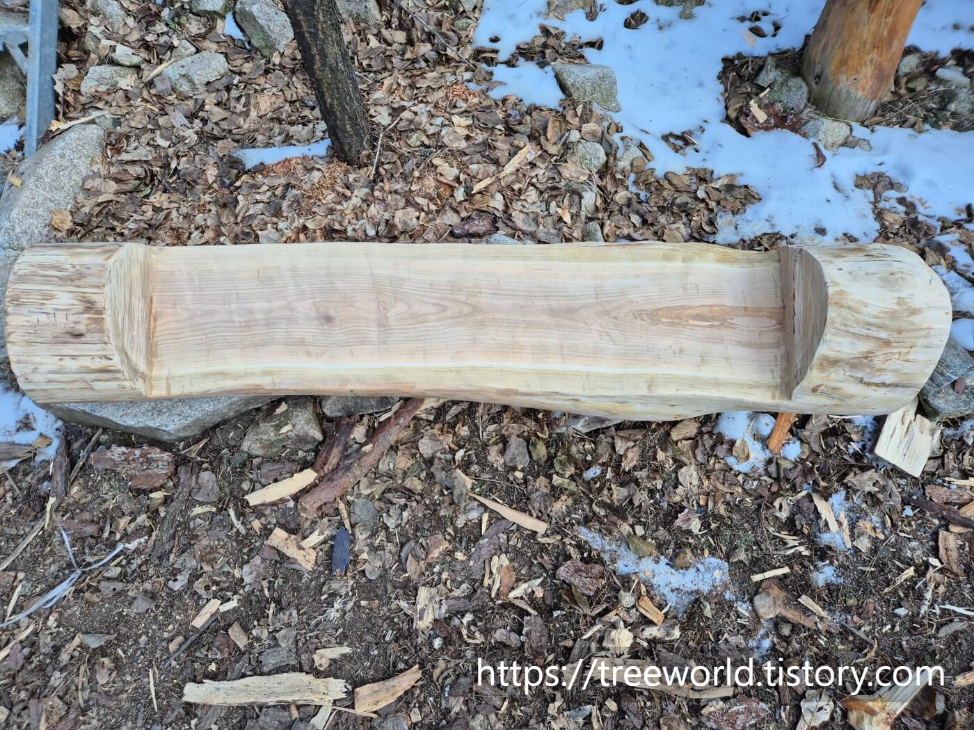 아름다운 원목 나무의자 만들기의 중간단계는 엔진톱으로 형태를 만들고 난다음 끌과 그라인데로 정리를 하여야 합니다.