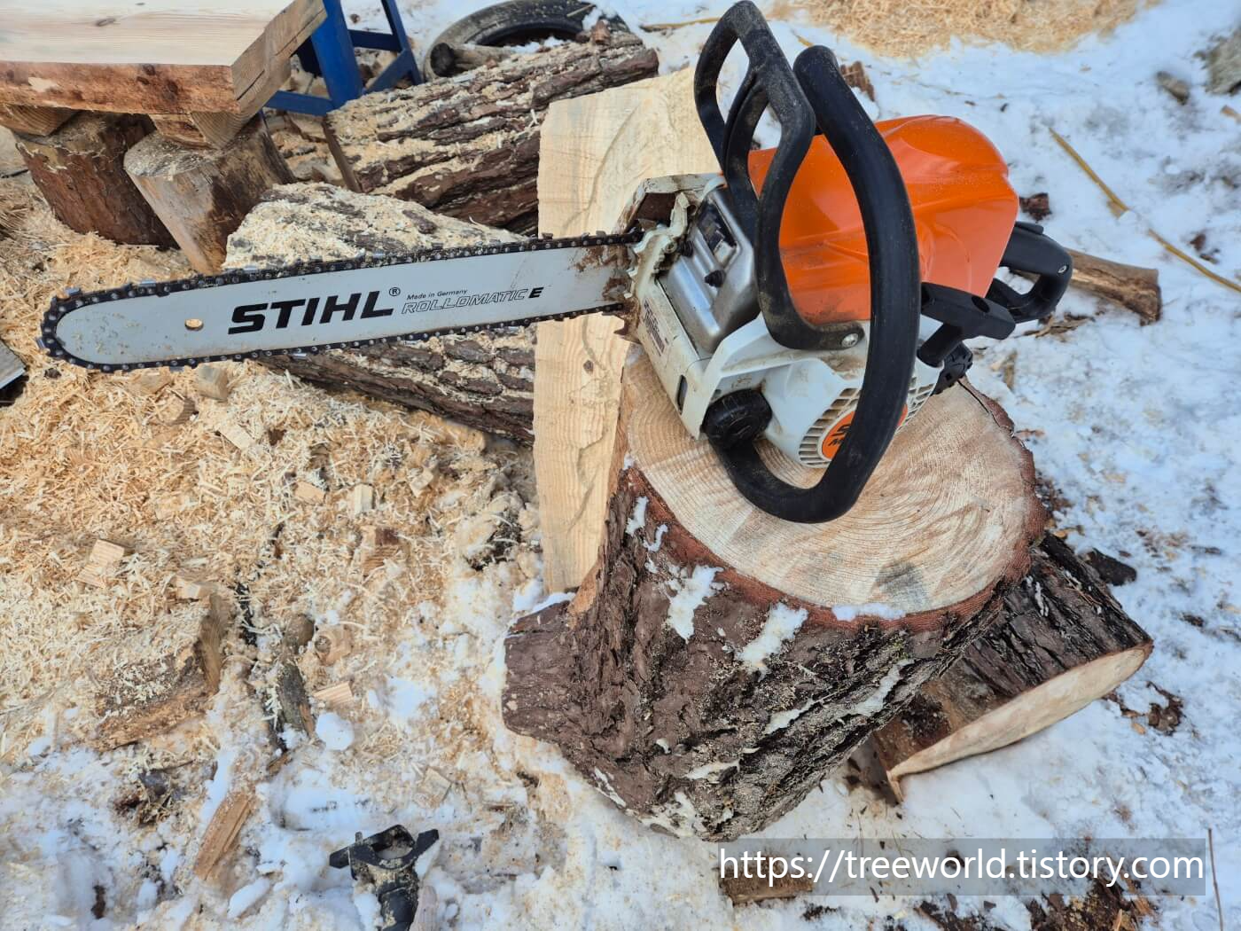 다리를 만들 때는 큰 엔진톱으로 기초작업을 하고 세밀한 부분은 작은 전기 엔진톱으로 하면 작업이 쉽습니다.