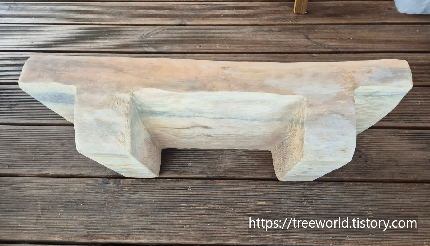 상판의 기초는 전동대패로 한 다음 세밀한 부분은 그라인더로 마무리 하였습니다. 마지막으로 목공용 인두로 이름을 새겨서 완성하였습니다. 목재 채취에서부터 글자 새기기까지 4시간 정도 소요 되었지만 원목은 작년여름 폭우로 전도된 것이 있어서 가능하였습니다