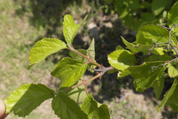 잎은 짙은 녹색으로 마주나며 달걀을 거꾸로 세운 모양입니다. 잎맥이 뚜렷하고 가장자리 전체에 톱니가 있습니다.