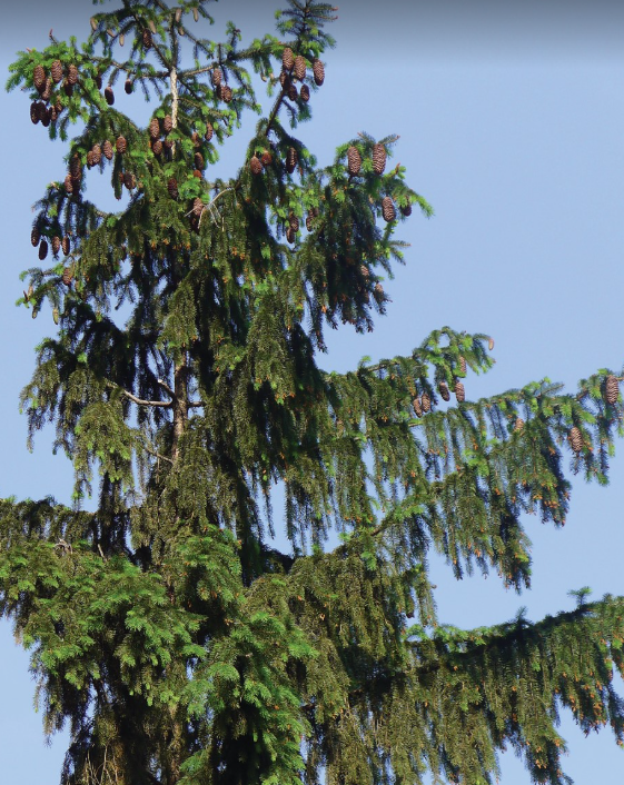 독일가문비는 유럽원산으로 수목감별포인트는 아래로 자라는 잎과 가지 그리고 열매입니다. 특히 열매가 많이 달리면서 잘 보이지 않는 것이 가지와 같이 아래를 향하고 있어 열매 구별이 어렵습니다.
