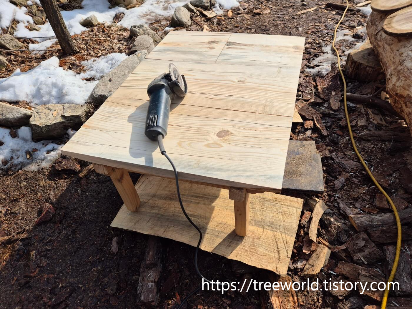 그라인더는 처음에는 목공용 #80으로 하다가 나중에는 #180 이상으로 교체하여 마무리 작업하면 목재 다듬기는 완료됩니다.