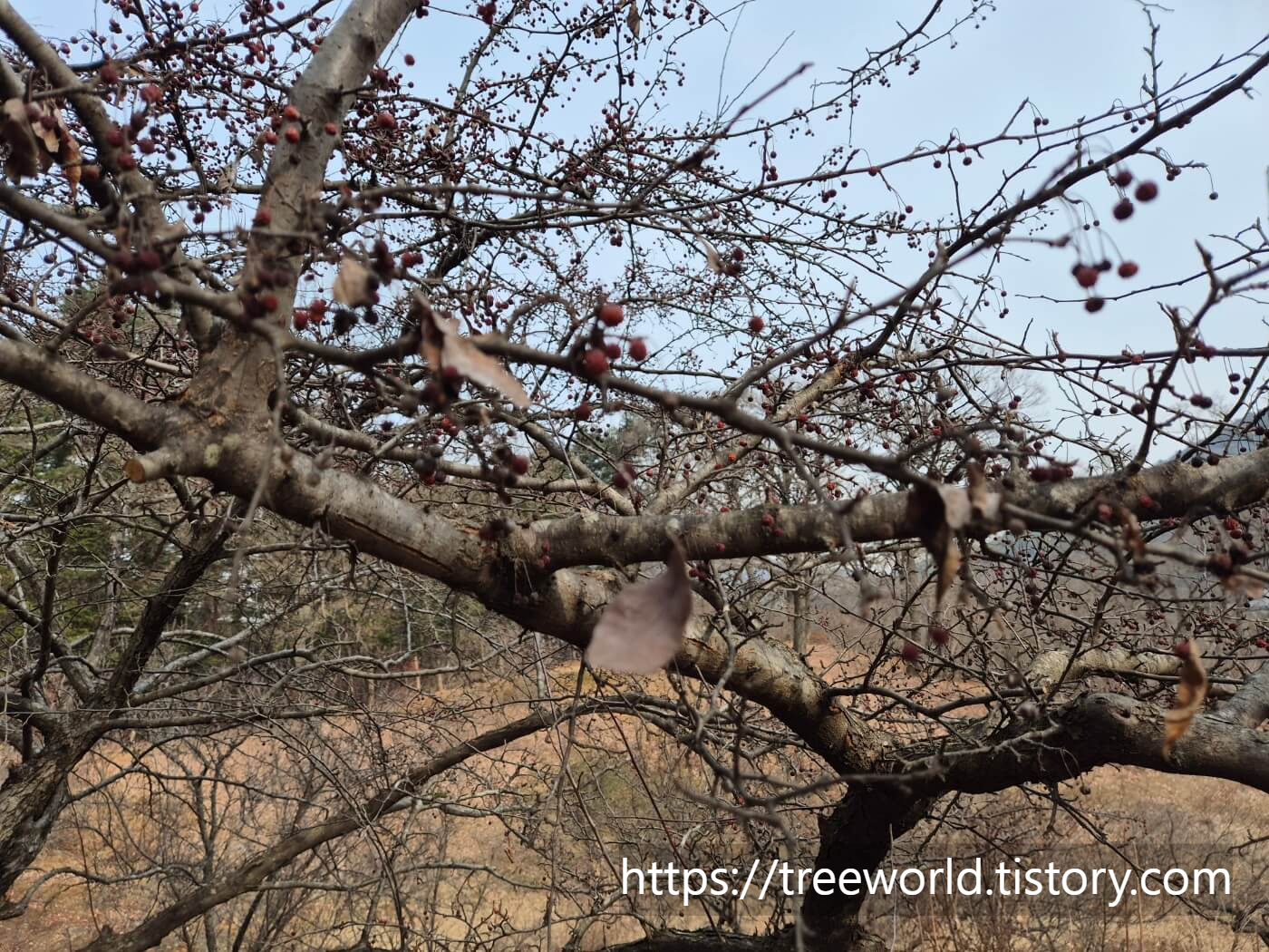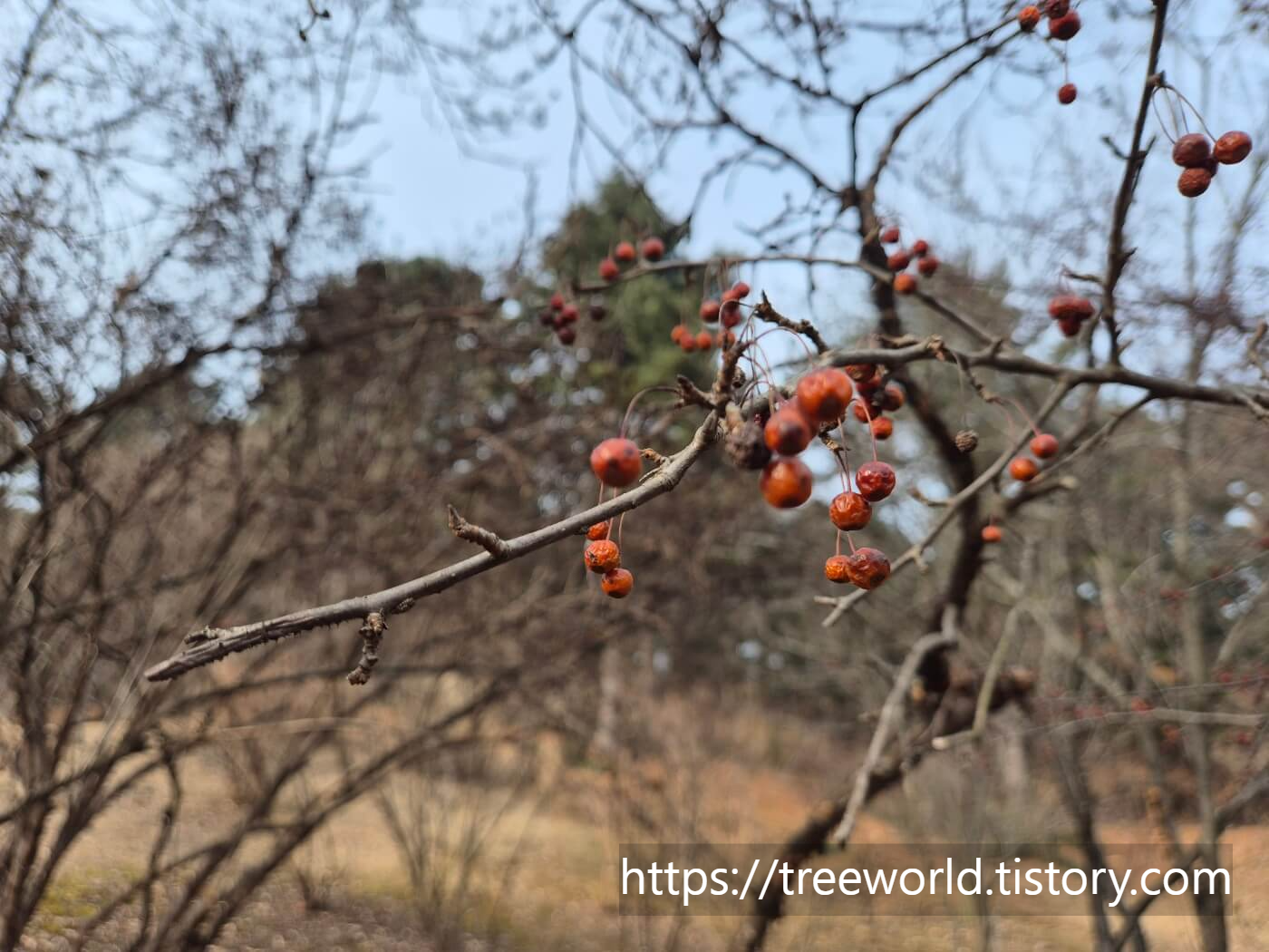 아그배나무의 열매는 어릴때는 노란색을 띠지만 익으면서 붉은색으로 변합니다. 아그배나무의 열매는 붉은색으로 아름다워서 관상용으로 식재됩니다.