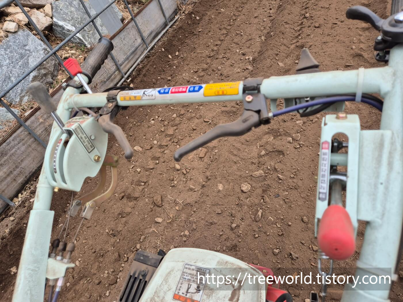 관리기는 매우 익숙한 경우를 제외하고는 저속과 1단으로 사용해야 합니다. 바닥에 돌이 있으면 흔들림이 매우 심합니다. 그리고 사용전에는 안전사용법을 숙지해야 합니다.