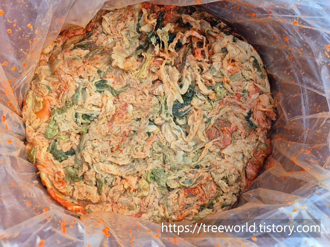 김장김치를 허들레 절인배추로 위쪽을 봉하면 김치의 짠맛도 없어지고 쉽게 쉬지도 않아 좋습니다. 그리고 김장찌게용으로 사용하면 매우 훌륭한 식자재가 됩니다.
