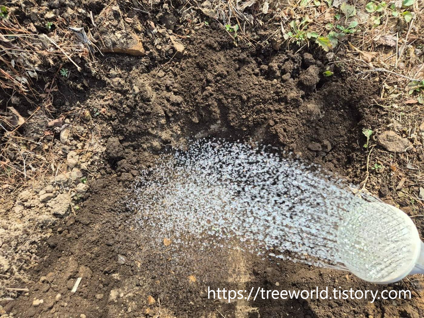 그리고 더 넓게 구덩이 속의 흙을 부더럽게 파서 공극을 만들어 주면 뿌리자람이 좋아져서 일찍 활착이 됩니다.