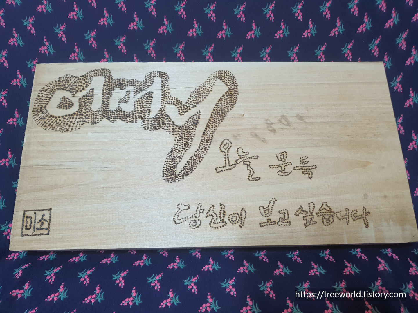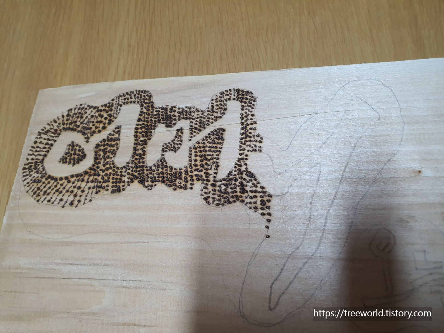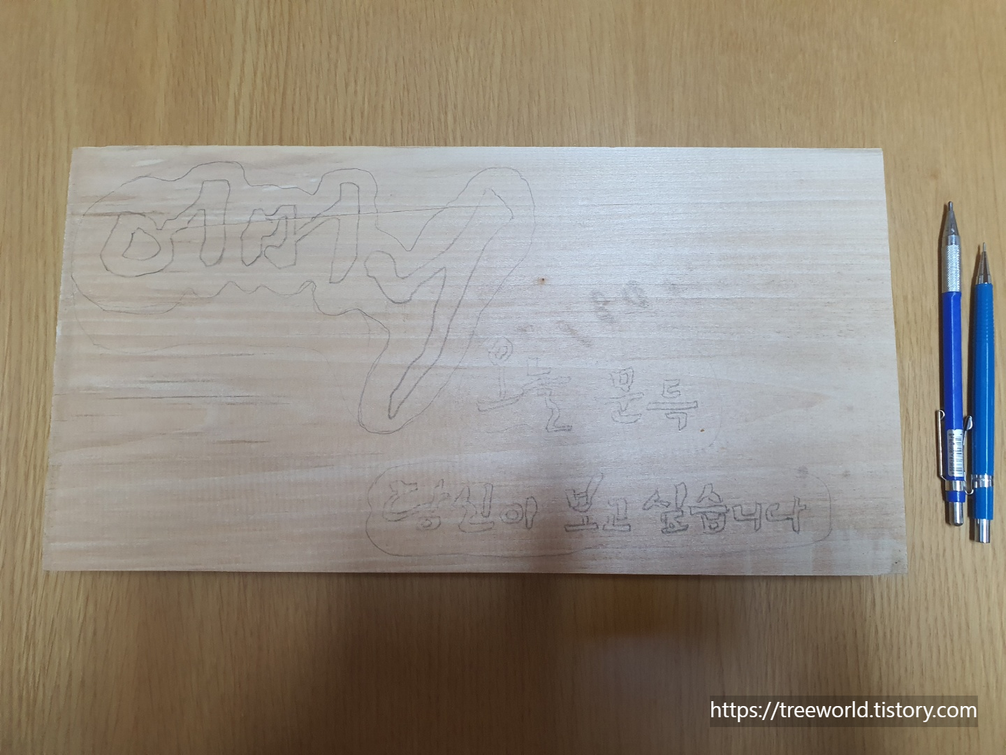 목판에 이것저것 연습해 보고 작업을 시작했습니다.