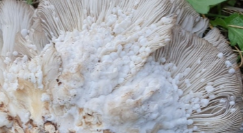 느타리버섯 흰혹병(사마귀병)은 버섯이 어느 정도 크게 자란다음 생깁니다. 어릴 적에 채취한 것에는 없었는데 자라면서 생기는데 매개충은 버섯파리이고 원인해충은 선충입니다. 선충이 버섯파리에 의해 전파되면 선충이 버섯의 갓 주름에 알을 놓고 알이 부화되면서 점점크지게 됩니다.