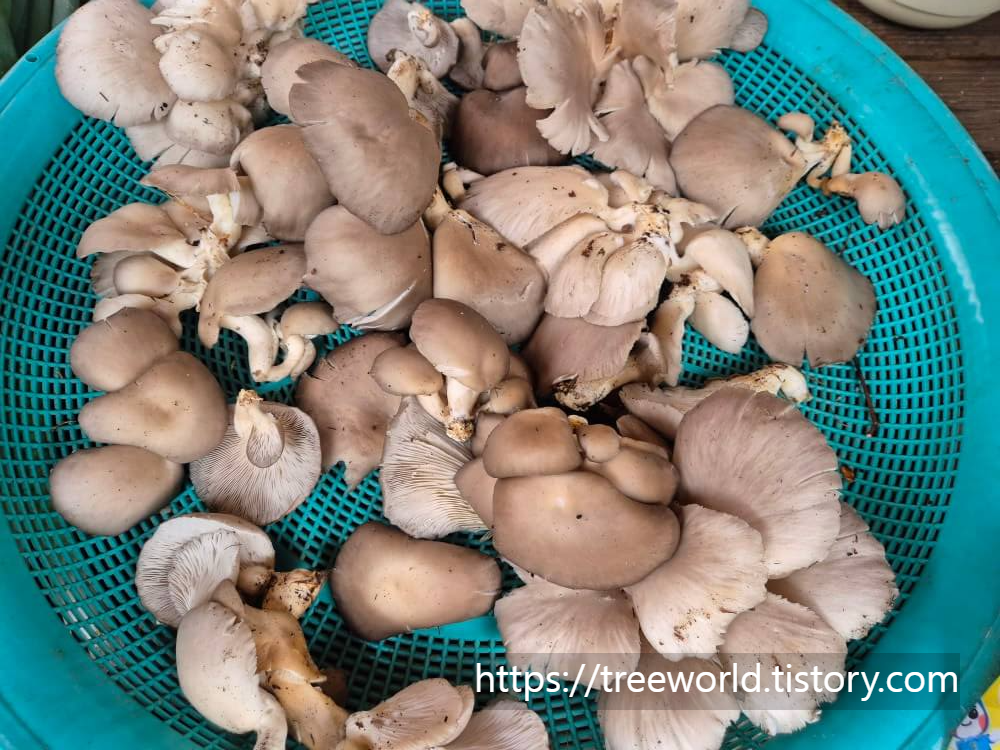 느타리버섯은 버섯 갓의 색이 푸르스럼하고 갓이 피지 않았을 때 채취하여야 합니다. 채취시기를 넘기면 바로 여러 가지 병해가 나타납니다.