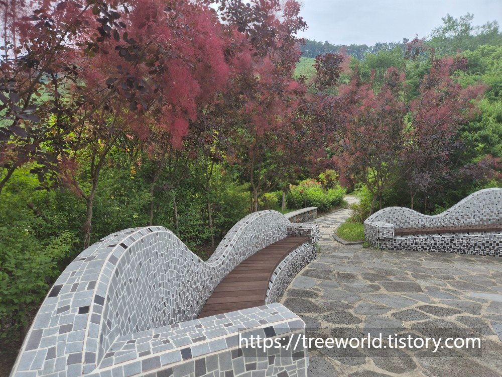 그리고 산책로가 전체 공원을 연결하고 있으며 중간중간 쉼터와 정자가 있어 쉬어갈수 있습니다. 특히 망개나무와 칠자화를 군식하여 군락을 만들었고 안개나무와 마가목, 에메랄드그린과 골드 등을 조화롭게 식재하여 아름다움을 더하고 있습니다. 들어오는 입구에 주차장이 넓게 있어 주차에 어려움은 없습니다.