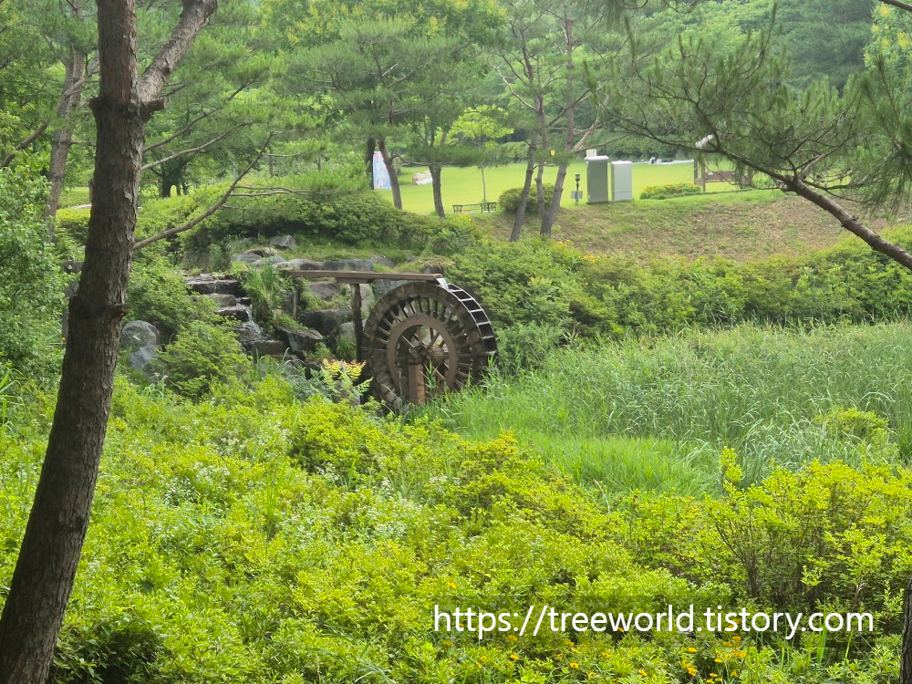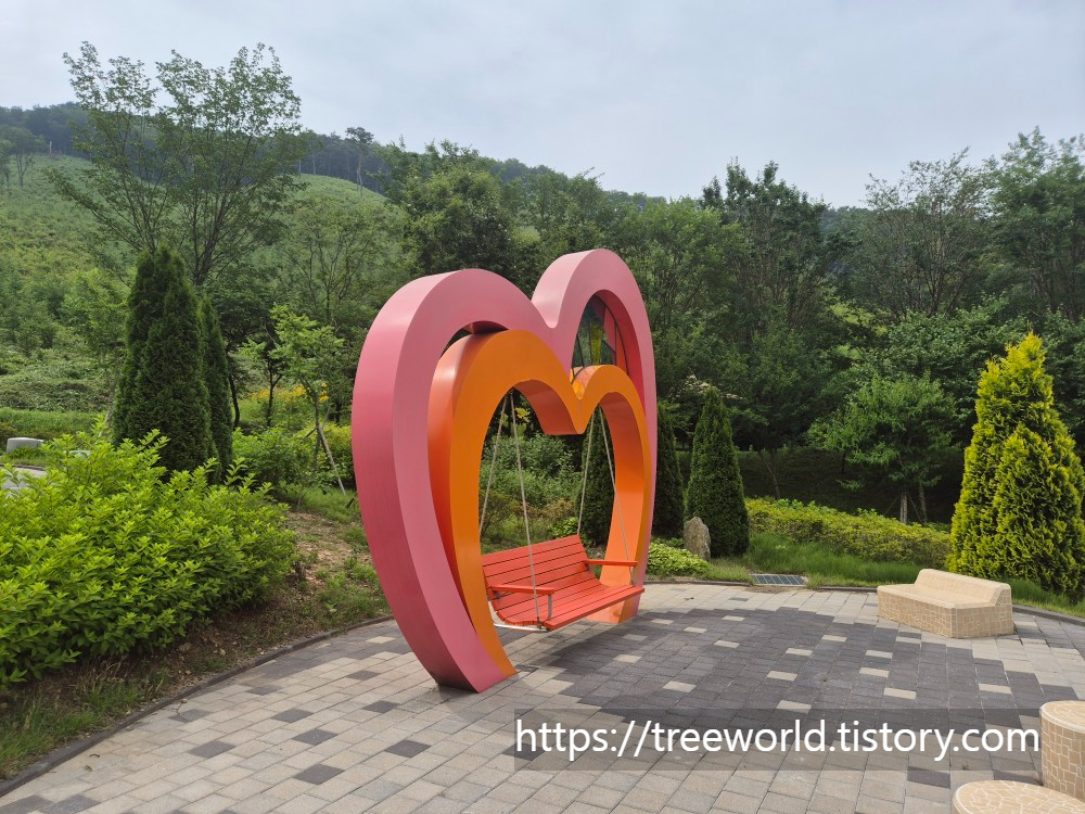 특히 편하게 쉴수 있는 정자와 다래덩굴터널, 여러 가지 수봉의 나무아래 쉼터 그리고 아이들 놀이터도 다양하게 설치되어 있습니다.