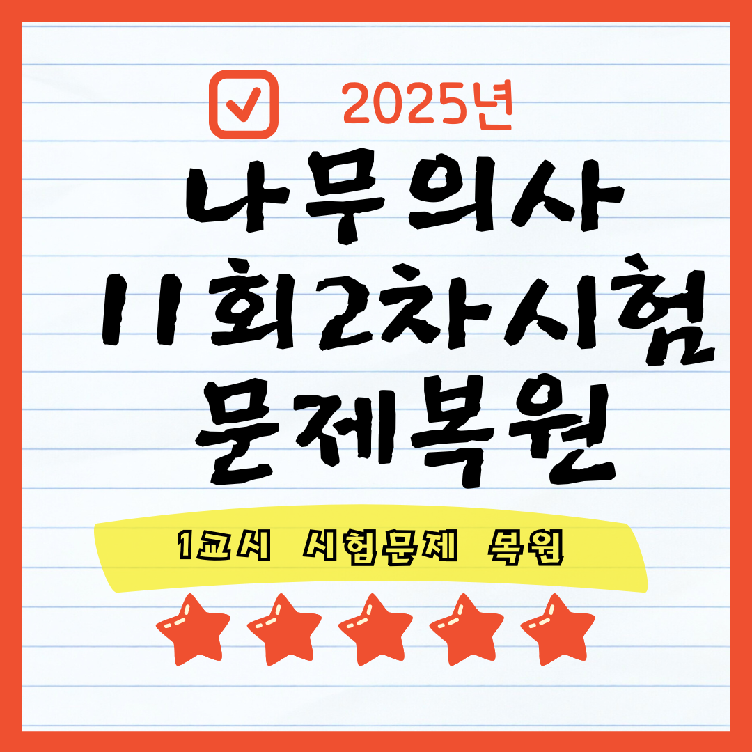 2025년 7월 12일 실시된 나무의사 11회 2차 시험 1교시 문제에 대하여 복원을 하였습니다. 전체 다 기억할 수는 없지만 여러 수험생을 통하여 문제를 복원하고 난이도에 대한 의견도 2~3회 시험본 분들을 통하여 청취하고 나름대로 정리하였습니다.