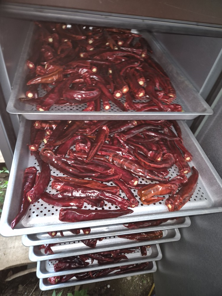 건고추전용은 52~55℃로 48시간 정도 건조시키고 토종고추는 48~50℃ 정도로 48시간 건조하면 됩니다. 그리고 건조기를 열고 건조상태를 확인 후 1~2시간 추가하면 완성됩니다.