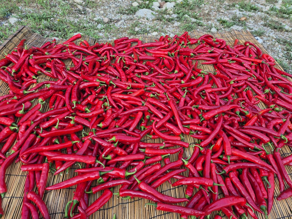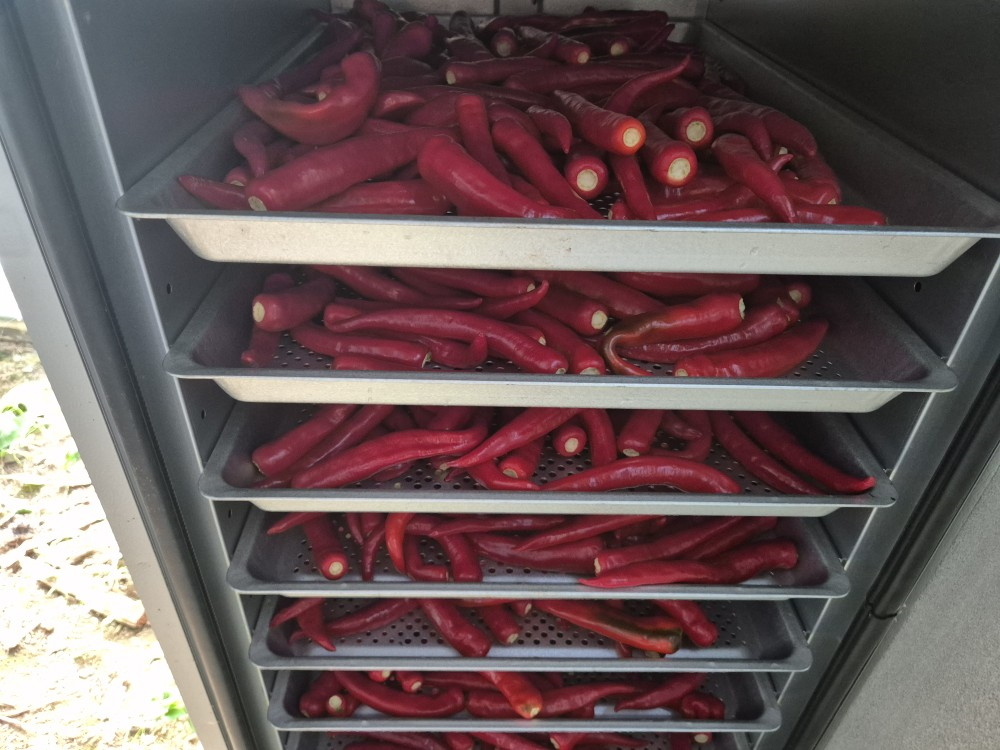 하루정도 햇살에 말린다음 고추가 약간 골게 되면 건조기에 넣어야 합니다. 그런 다음 저온인 35~40℃온도로 하루 24시간을 거조 시킵니다.