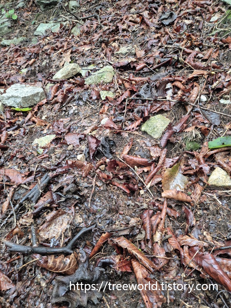 구광자리 3곳을 다닌결과 3곳의 모습이 전혀 달랐습니다. 한 곳은 거의 나오지 않았고 한 곳은 아직 작아서 좀 더 자라라고 그냥 사진만 찍고 패스했습니다. 그리고 마지막 한 곳은 비가 안 맞는 곳은 적당한 크기의 능이버섯이 그거 한송이 있었고 다른 쪽에서는 줄 능이가 있었지만 이미 사그라지고 말았습니다. 줄 능이가 10개 넘게 사그라진 것이 못내 아쉬웠지만 어쩔 수 없는 상황입니다.