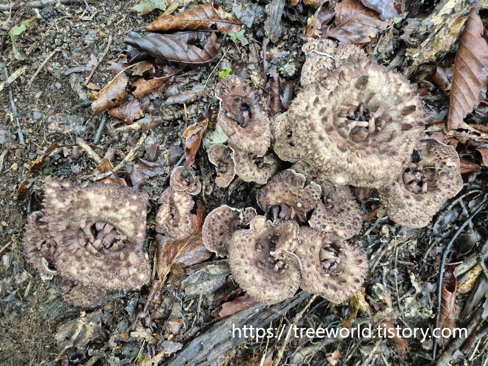 제가 지난주 수요일에 능이버섯 산행을 갔다가 아직 유생(500동전크기)이라 숨겨두고 왔었는데 3일 뒤 오늘(토요일) 갔더니 완전 성숙한 능이버섯 자실체가 되었습니다. 지금보다 며칠 더 지나면 비가 계속 오는 관계로 아마 썩을 수 있어 바로 채취했습니다. 유생에서 성숙한 자실체로 자라는데 3~5일 정도면 충분한 것 같습니다. 지금처럼 비가 많이 오고 습도가 높으면 3~4일 정도면 됩니다.