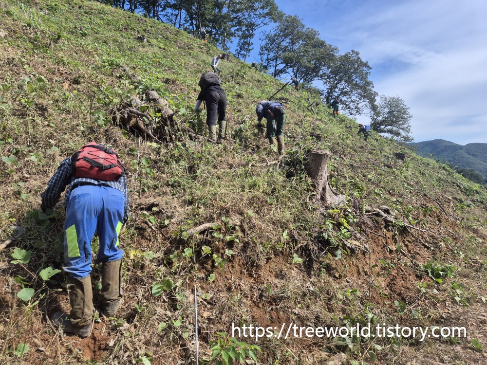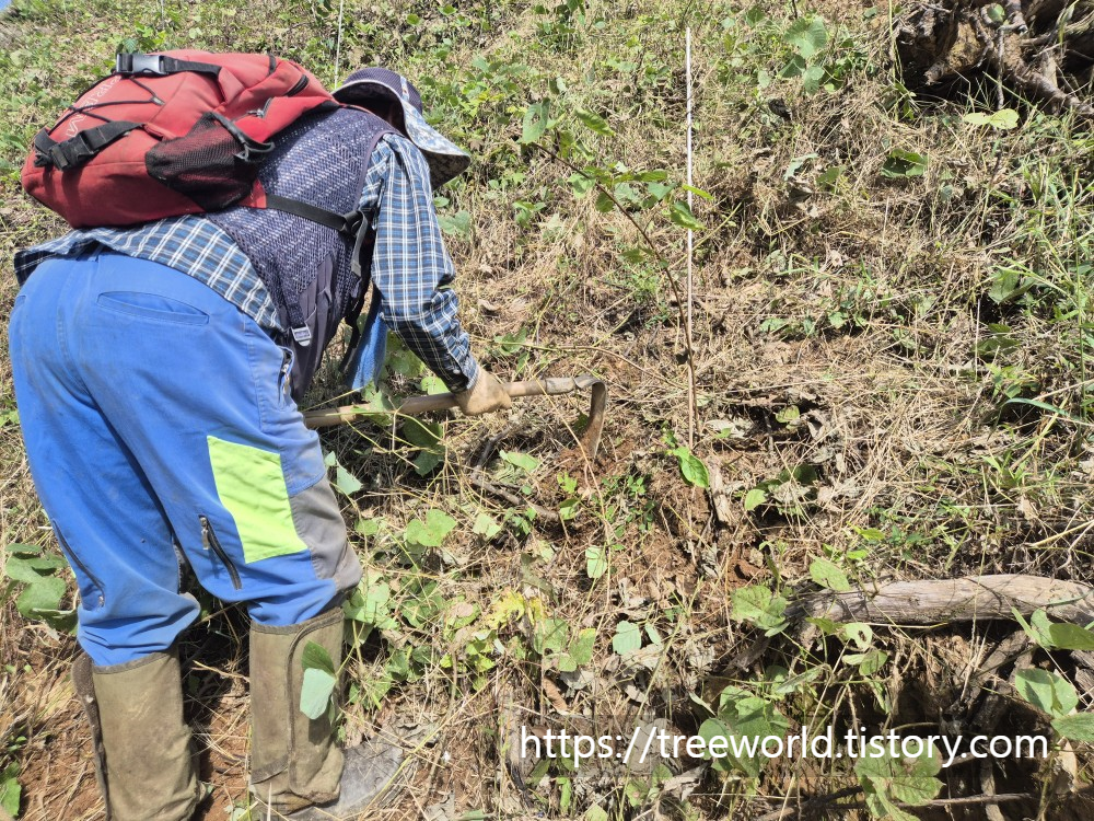 산림법인에서 벌채지에 조림을 하고 풀베기, 덩굴제거 등의 숲 가꾸기를 하게 됩니다. 이중 조림지에 발생되는 칡덩굴제거 방법입니다. 덩굴제거는 숲 가꾸기 사업의 중요한 작업입니다. 조림 당해연도부터 3년 정도 칡덩굴을 제거해 주면 조림목이 자리를 잡고 성장을 하게 됩니다.