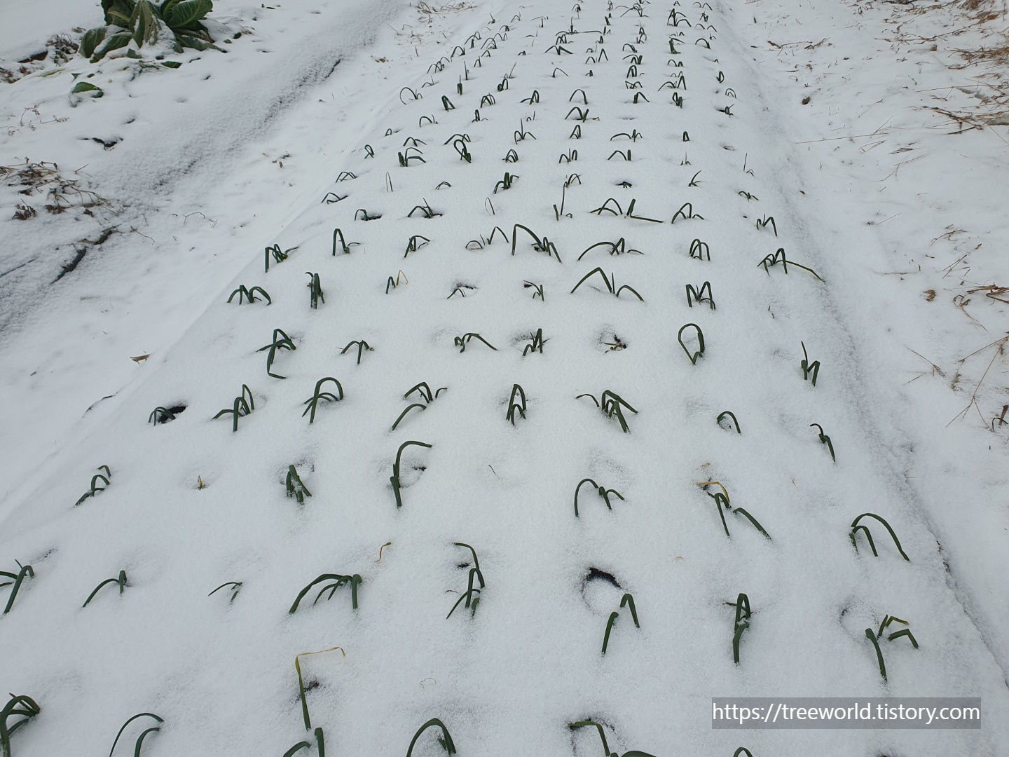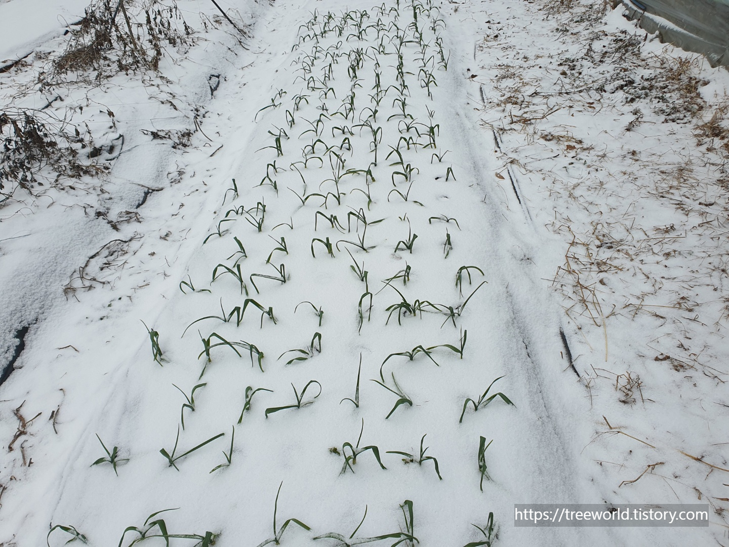 마늘도 눈밭에 그냥 두었습니다. 죽을까요?