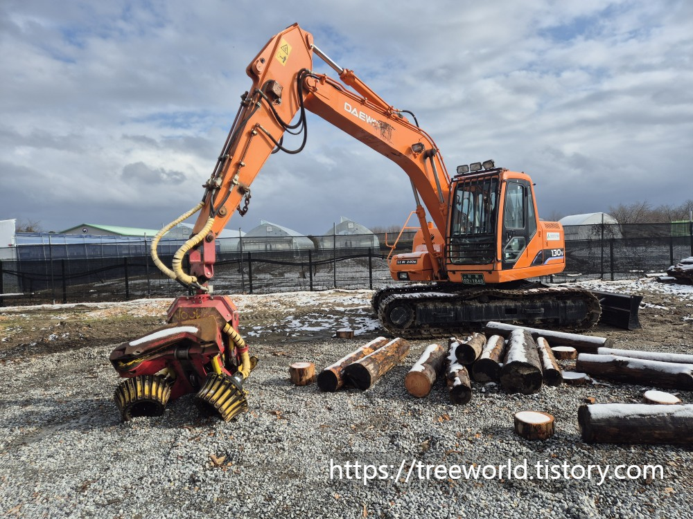 하비스트를 궤도형 굴삭기에 장착을 하면 경사가 급하고 험분한 산에도 이동가능하며 벌목 후 규격재로 단목이 가능하므로 벌목작업에는 반드시 필요한 장비입니다.