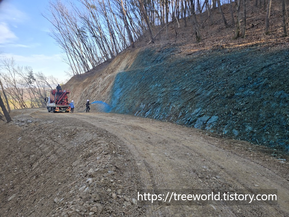 임도시공사업 중 녹화공법에 대하여 간략히 소개해 드리겠습니다. 임도신설사업 중 녹화공 공종은 마무리단계에 시공하는 공종입니다. 녹화공법에는 여러 가지가 있겠지만 임도시공에서 가장 많이 사용되는 줄파종과 시드스프레이를 설명드리겠습니다.