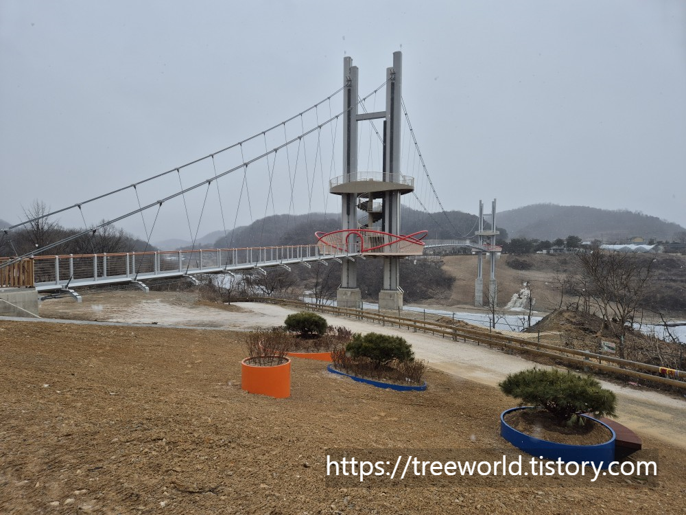 연천 한탄강 아우라지 베개용암 출렁다리는 2025년 12월에 완공되었습니다. 연천군 전곡읍 신답리와 포천시에서 내려오는 영평천이 만나는 아우자리에 약 300m길이에 폭 1.5m로 만들어진 현수교입니다.